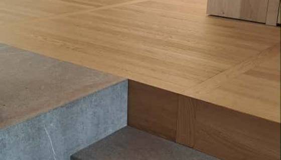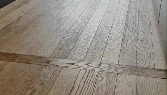 Ferruccio è un Signore del Parquet: come poterlo definire diversamente dopo tanti anni spesi a lavorare con attenzione e qualità nel mondo della posa e levigatura dei pavimenti in legno. Non solo: Ferruccio è uno specialista a 360 gradi che si occupa anche di laminature e ripristini di pavimenti in legno rovinati, ma anche di montaggio e posa di succedanei del legno quali i laminati e parquet in PVC e PSC ad effetto legno. In questo caso condivide con noi fotografie di un lavoro molto complesso, risultato di una posa certosina di plancette di parquet prefinito in legno di rovere con finitura opaca naturale color miele, con disegno a binario, o posa parallela, interrotte da file ortogonali di medesimo legno disposte ad attraversare lo schema principale.
