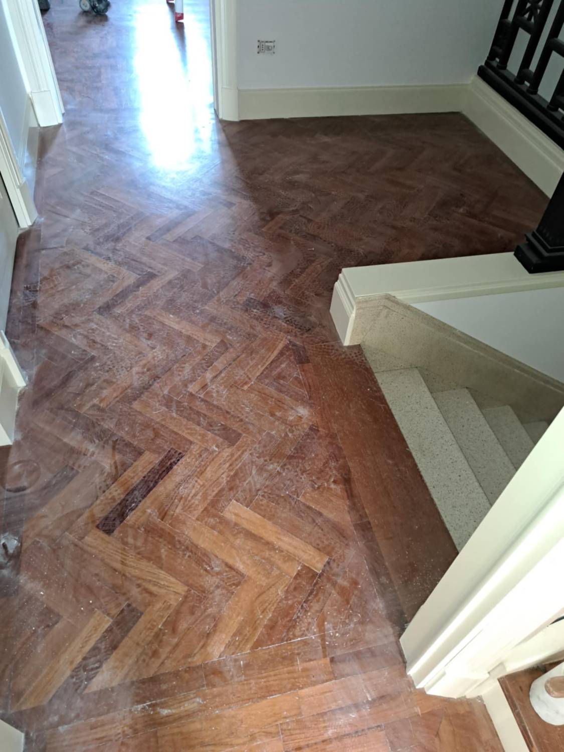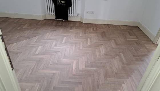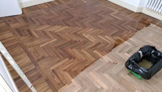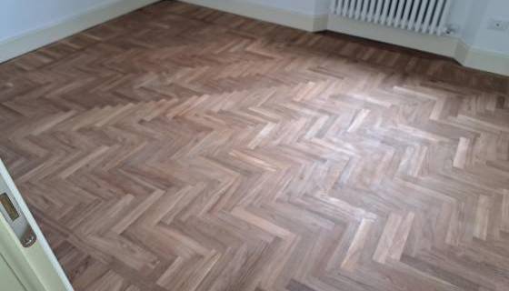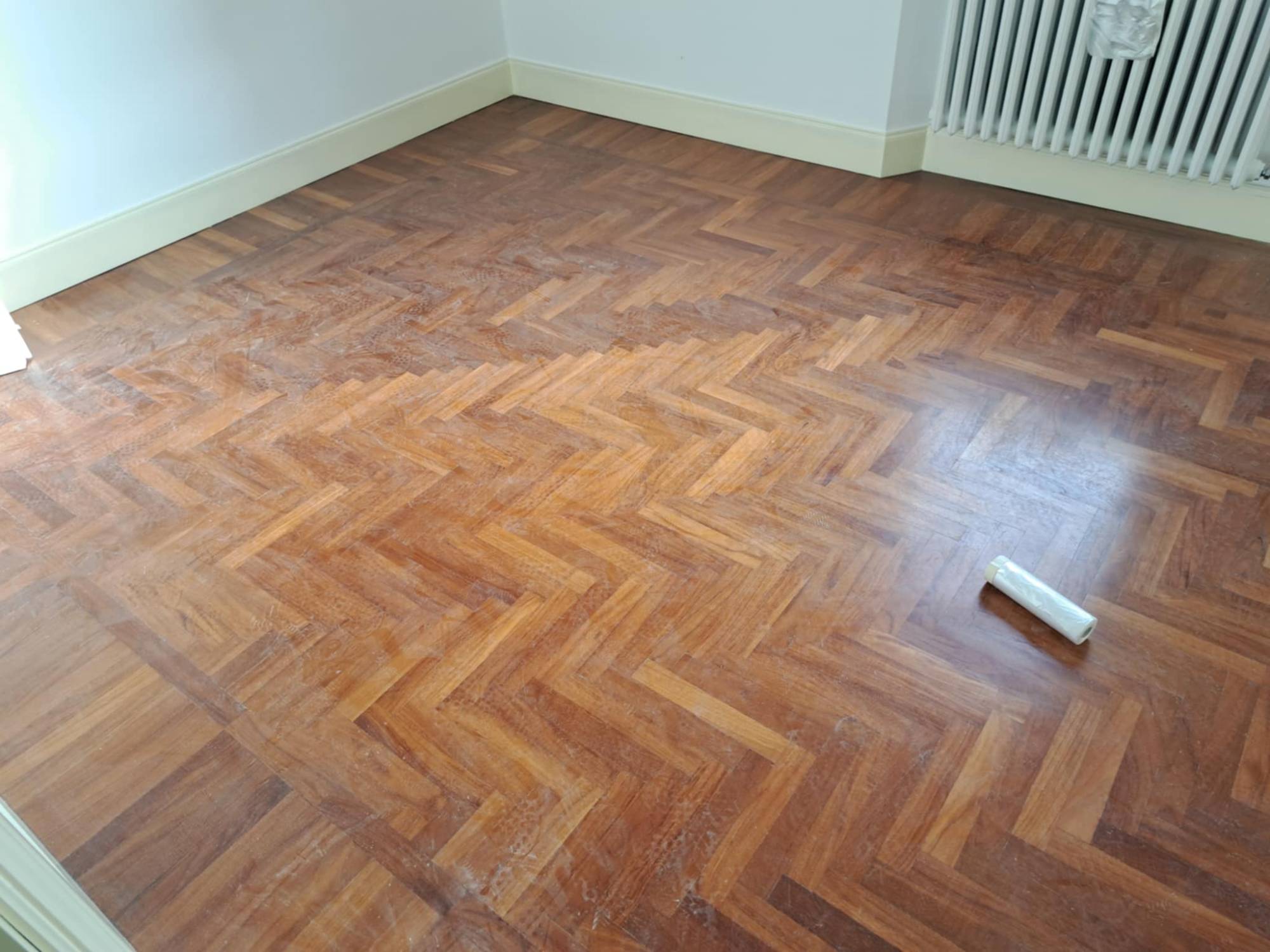 Le immagini che ci ha mandato Andrea, parquettista toscano iscritto al portale, rappresentano un lavoro di recupero piuttosto complicato data la natura di questo pavimento in legno di teak posato a spina italiana. Infatti alcune essenze di legno da parquet sono più ostiche di altre a levigare e riportare al grezzo prima di farne i dovuti trattamenti di ripristino, quali la stuccatura e la verniciatura. Infatti il legno di teak di questo parquet per essere riportato al legno vivo necessita molti passaggi a macchina per asportare prima la vecchia vernice poi riportare la superficie a "poro aperto" come si dice nell'ambiente. Solo così si potrà poi intervenire con il recupero delle parti distaccate, fessurate e riempirle di stucco, per poi ricarteggiare il parquet e prepararlo alla verniciatura finale (eseguita ovviamente a più mani successive e carteggiando anche tra la prima di fondo e la seconda di finitura). Il motivo per cui il teak presenta difficiltà rspetto ad una pianta di conifera ad esempio, come il parquet in rovere assai più noto, è che il teak essendo una essenza oleosa impasta i dischi abrasivi della macchina rendenone necessaria una ripetata sostituzione. Se si pensa che per una perfetta lamatura bisogna alternare in sequenza fino a 5/6 grane decrescenti di durezza, si fa presto il conto di quanto tempo e denaro costi questo specifico tipo di lavorazione.