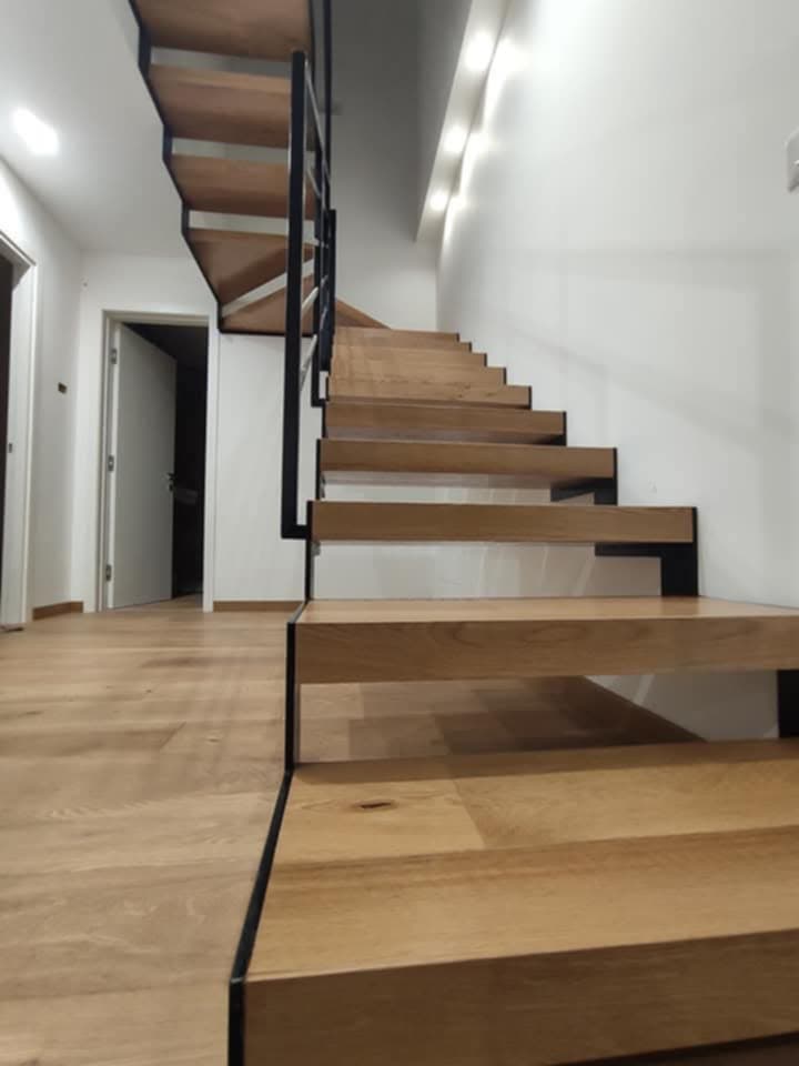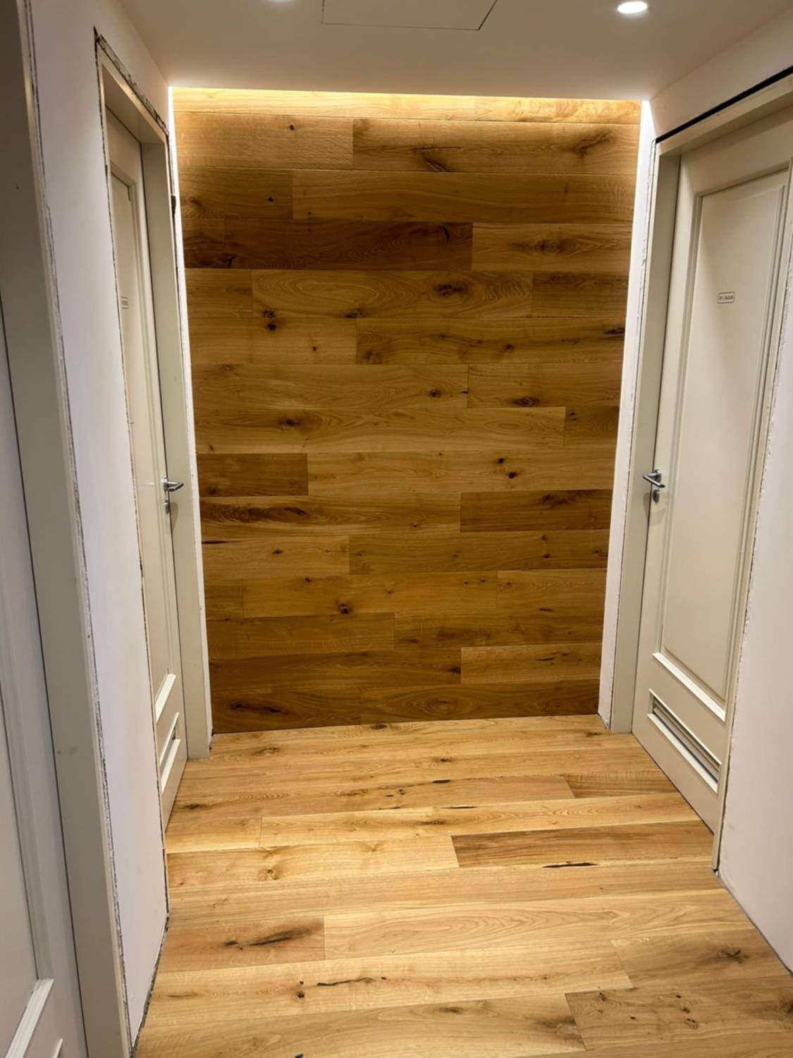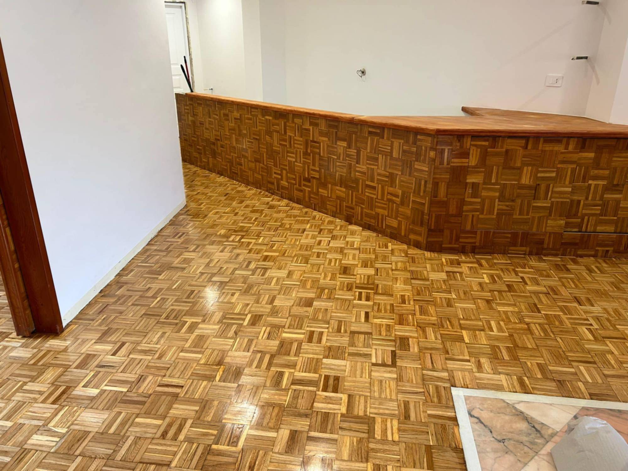 Ma torniamo ai lavori che ha condiviso gentilmente con noi Gianluca: si tratta di vari ambienti con tipi di legno e sistemi di montaggio di parquet differenti, si va dalla spina italiana in rovere alle doghe di quercia rustica posate a correre. Anche le scale e relative coperture in legno dei gradini sono stati realizzati con manualità tutta artigianale e su misura sempre partendo dal medesimo legno utilizzato per il parquet. I listincini in legno massello disposti a quadrotte contrapposte si chiamainvece parquet industriale, molto in voga negli anni 70 e 80 e tornato oggi in auge in formati più grandi ma con medesimo senso e sistema di posa. Gianluca ha montato alcuni di questi pavimenti allo stato grezzo per poi levigarli e stuccarli e verniciarli a terra, mentre altri erano prefiniti già verniciati e pronti al montaggio con sistema incollato o con posa flottante usando appositi tappetini fonoassorbenti. In ogni caso le foto raccontano di una paziente dedizione al cliente e noi siamo fieri di condividerne le foto sul portale dei Parquettisti Italiani.